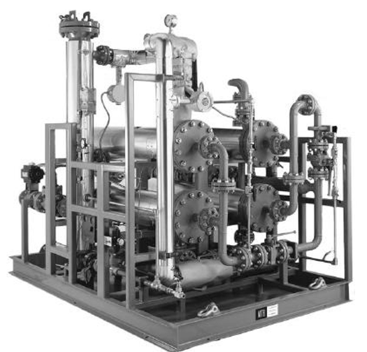 Um sich die Größenordnung einer derartigen Anlage vorstellen zu können, ist in der folgenden Abbildung ein Kompaktmodul dargestellt. Diese, für die Aufbereitung einer Gasturbine konzipierte Anlage verarbeitet in etwa 1180 m³/h, sie hat eine Abmessung von 2,5 m Breite, 1,8 m Länge und 1,8 m Höhe .